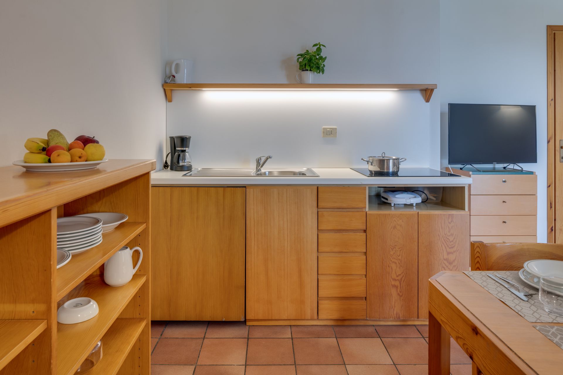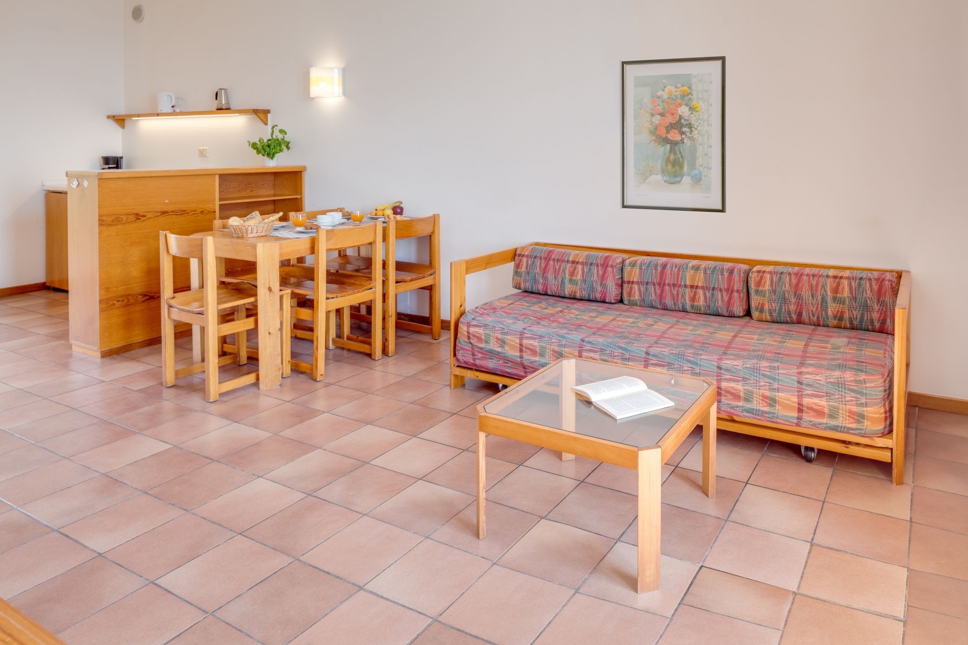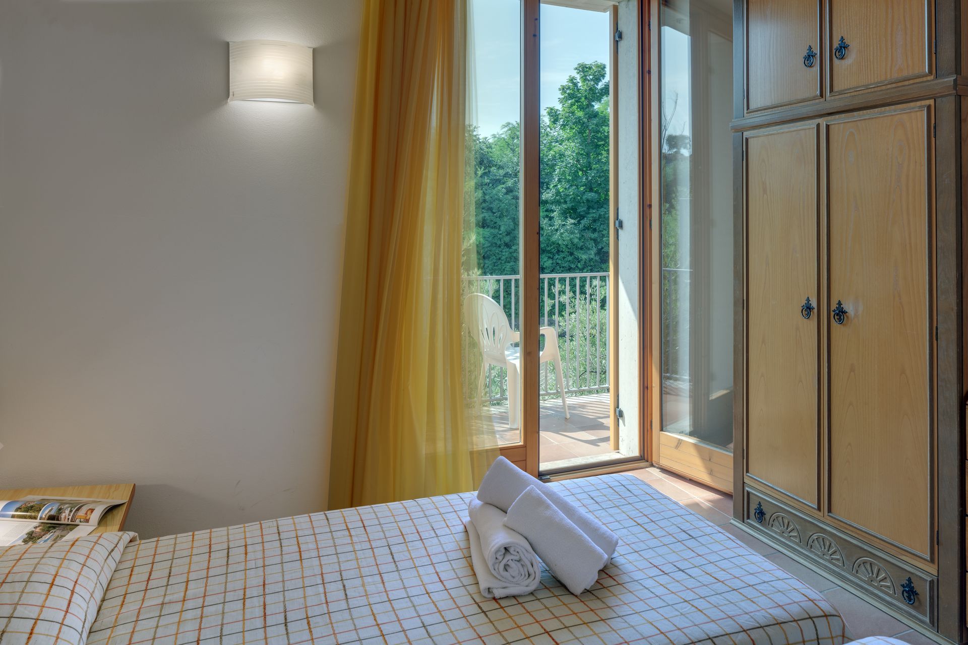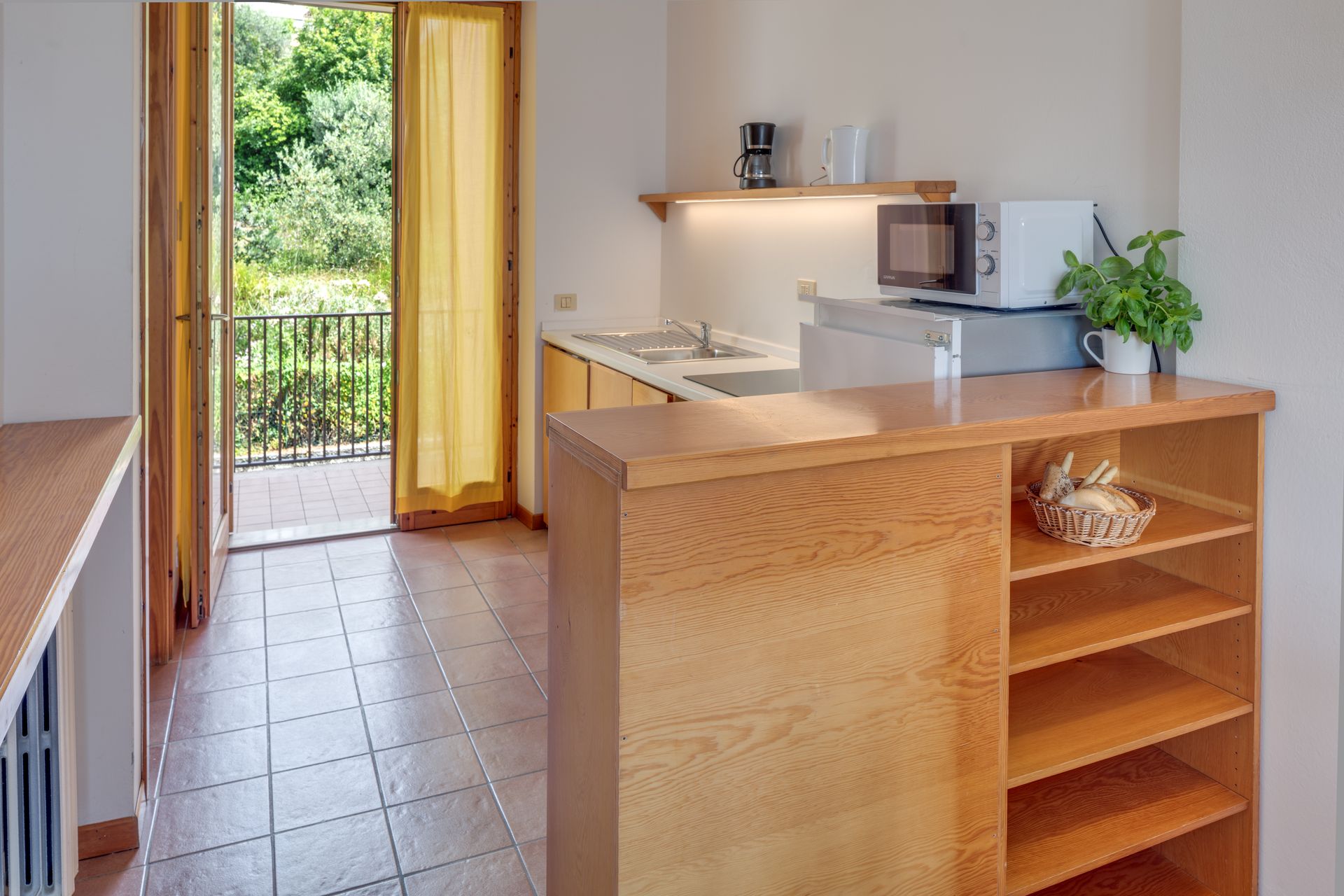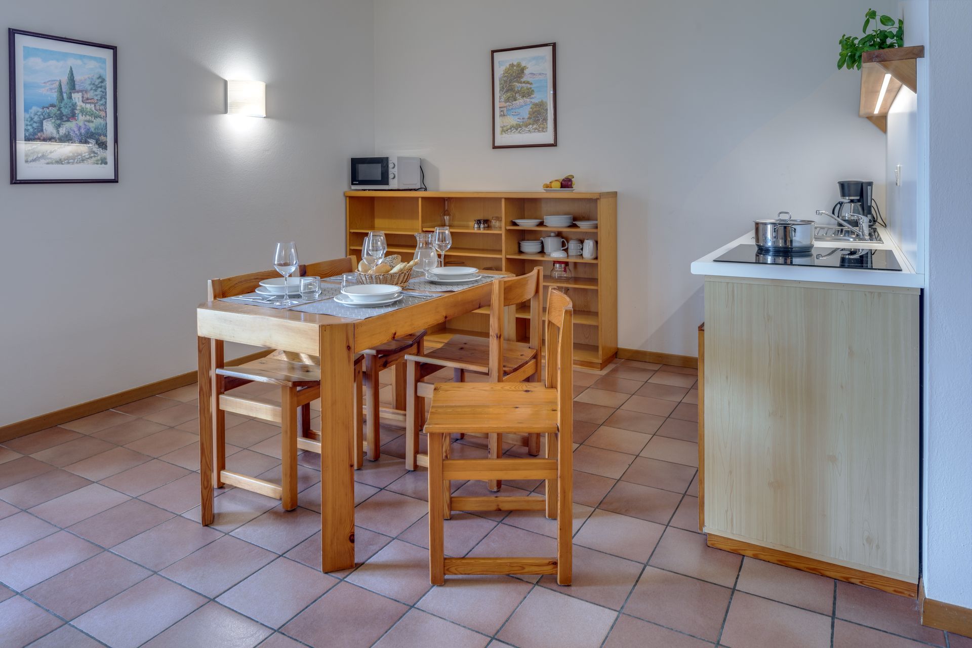 Surrounded by stunning scenery, our self-catering apartments are functionally furnished and equipped with air conditioning, a safe, satellite TV, and a kitchenette that includes a drip coffee maker and a moka pot. Each apartment also features a balcony or terrace furnished with a table and chairs.